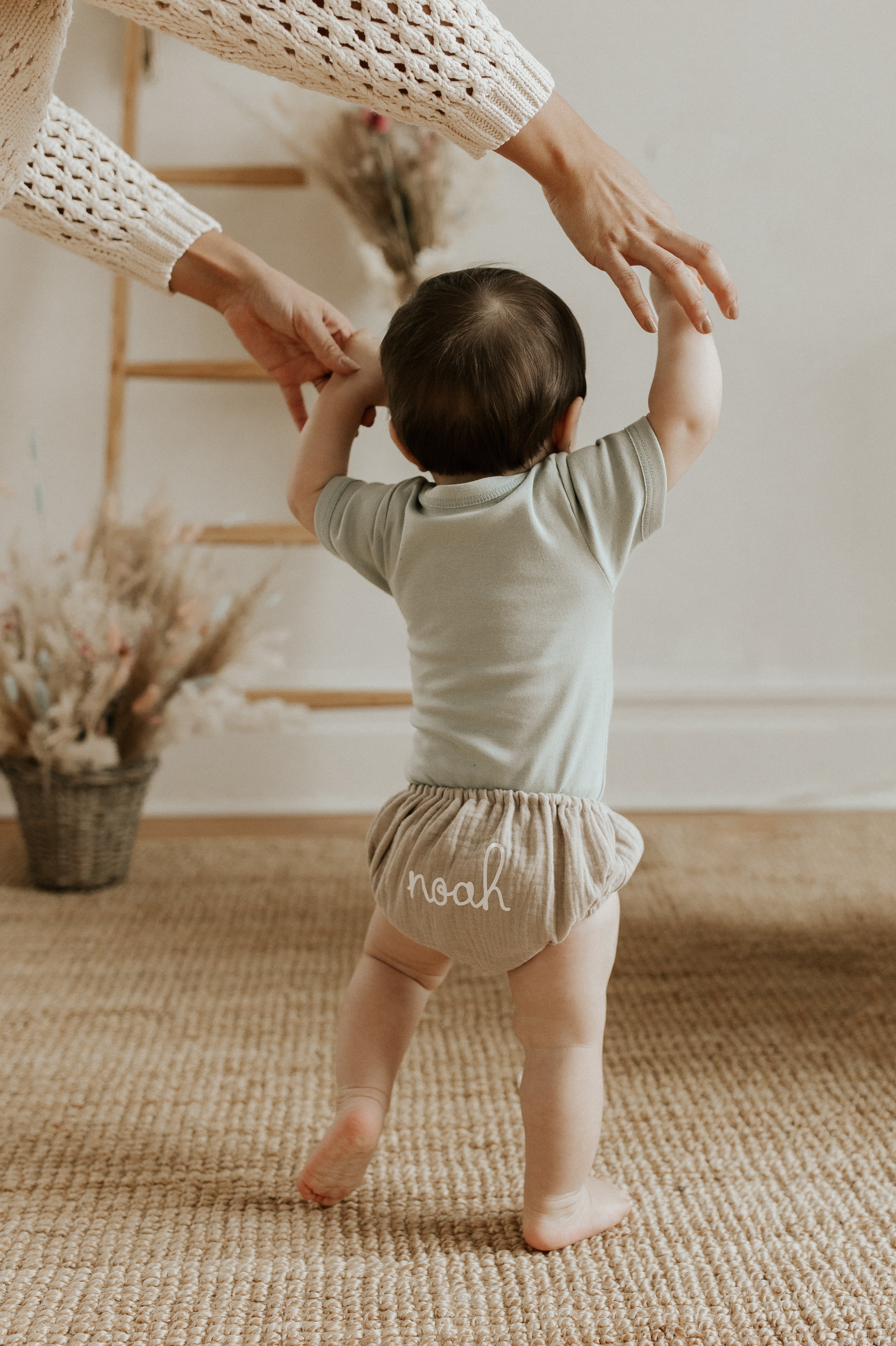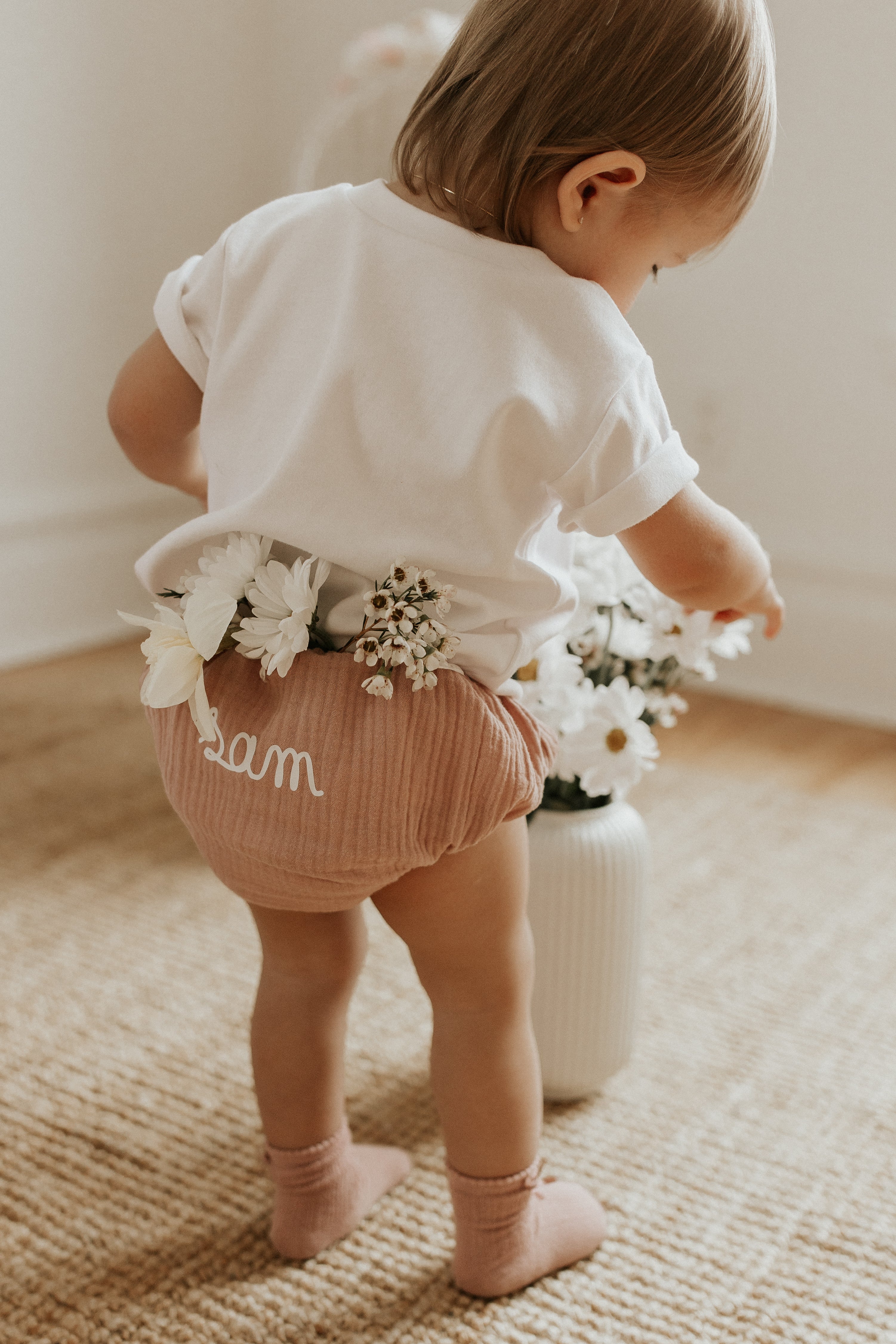 Laver à l'eau froide et sécher à l'air libre. Notez qu'il est normal qu'un tissu mousseline se froisse et le design suivra sa belle texture. Le bloomer reprend forme à l'usage.
