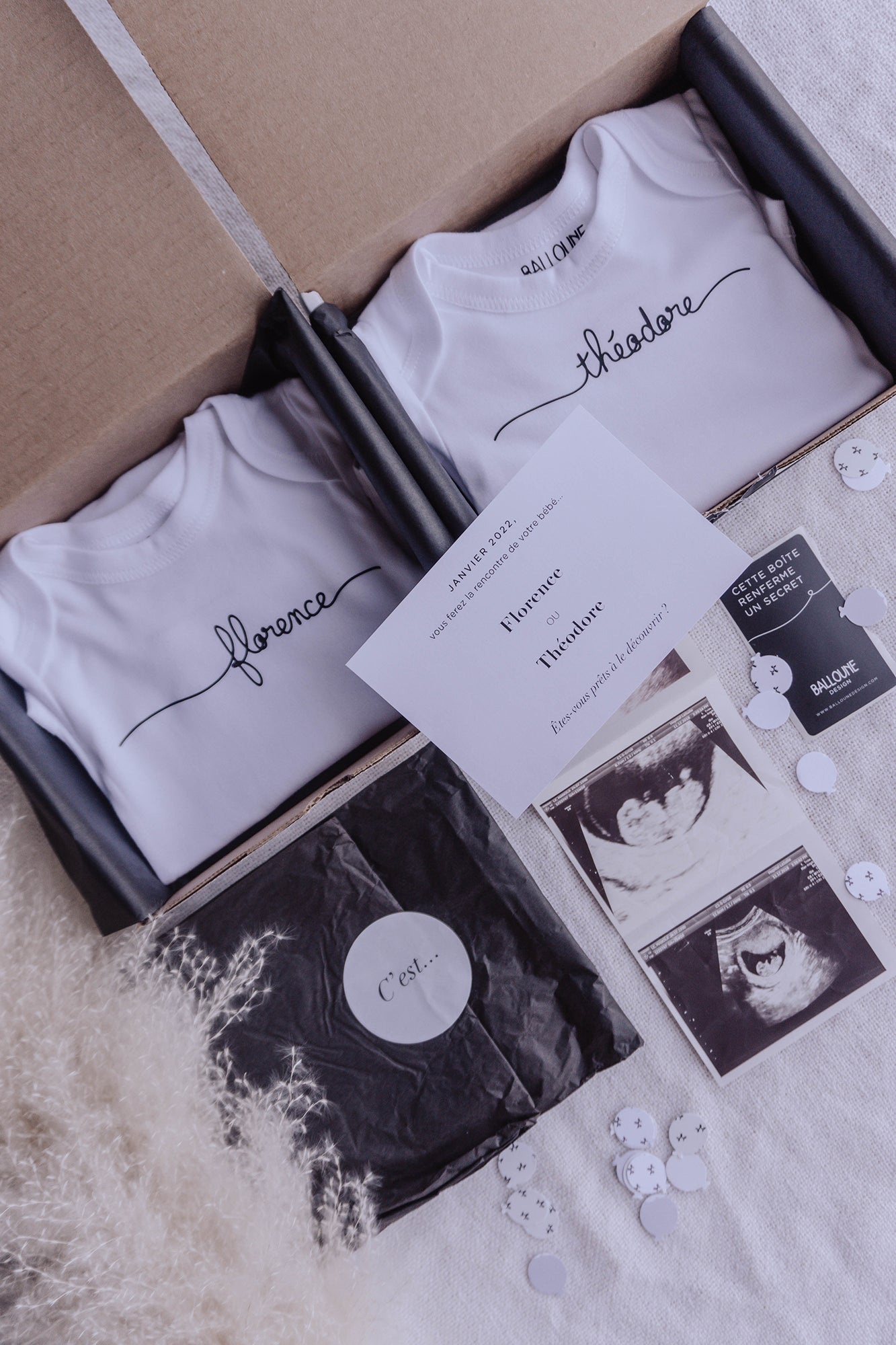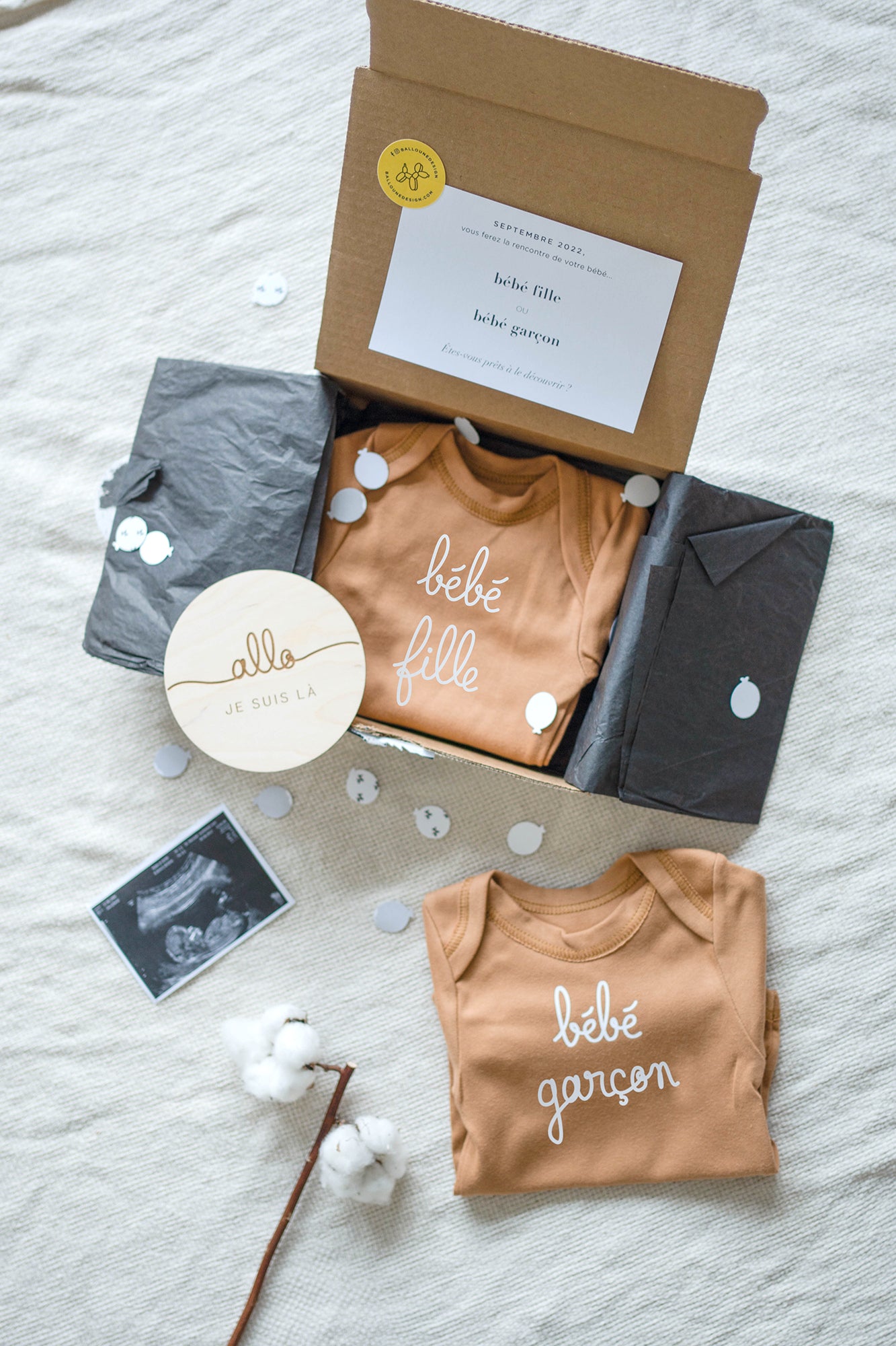 Vous pouvez aussi commander votre boite en nous envoyant le fichier mentionnant le sexe du bébé par courriel : contact@ballounedesign.com