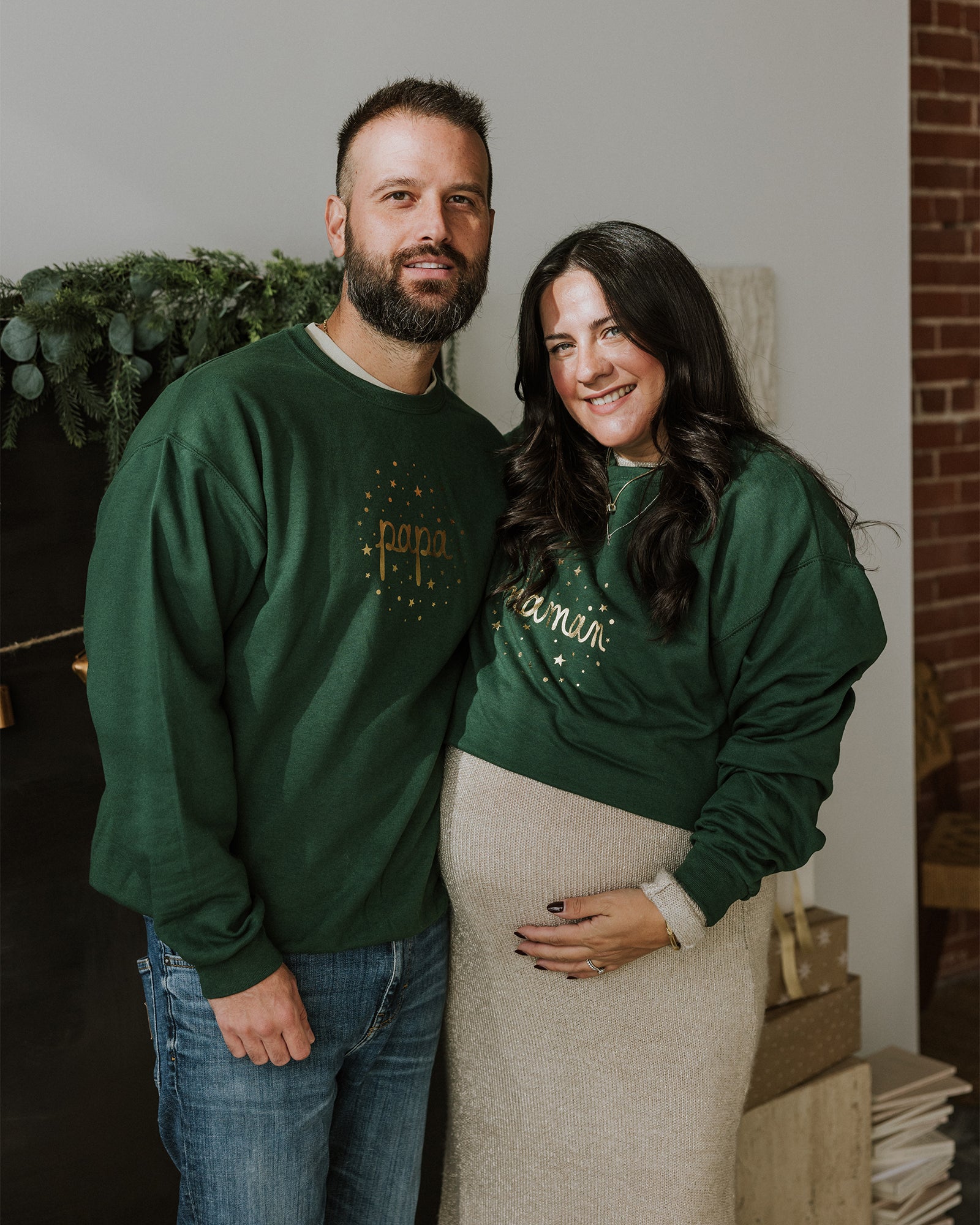 Crédits photos: @fredemck (papa et maman en crewneck rouge), @igphotographies (papa en crewneck noir), @maryevepelletier (mamie en t-shirt blanc), @falbalacloutier.photographe (maman en t-shirt blanc design doré), Emmie Belisle (maman et papa en vert)