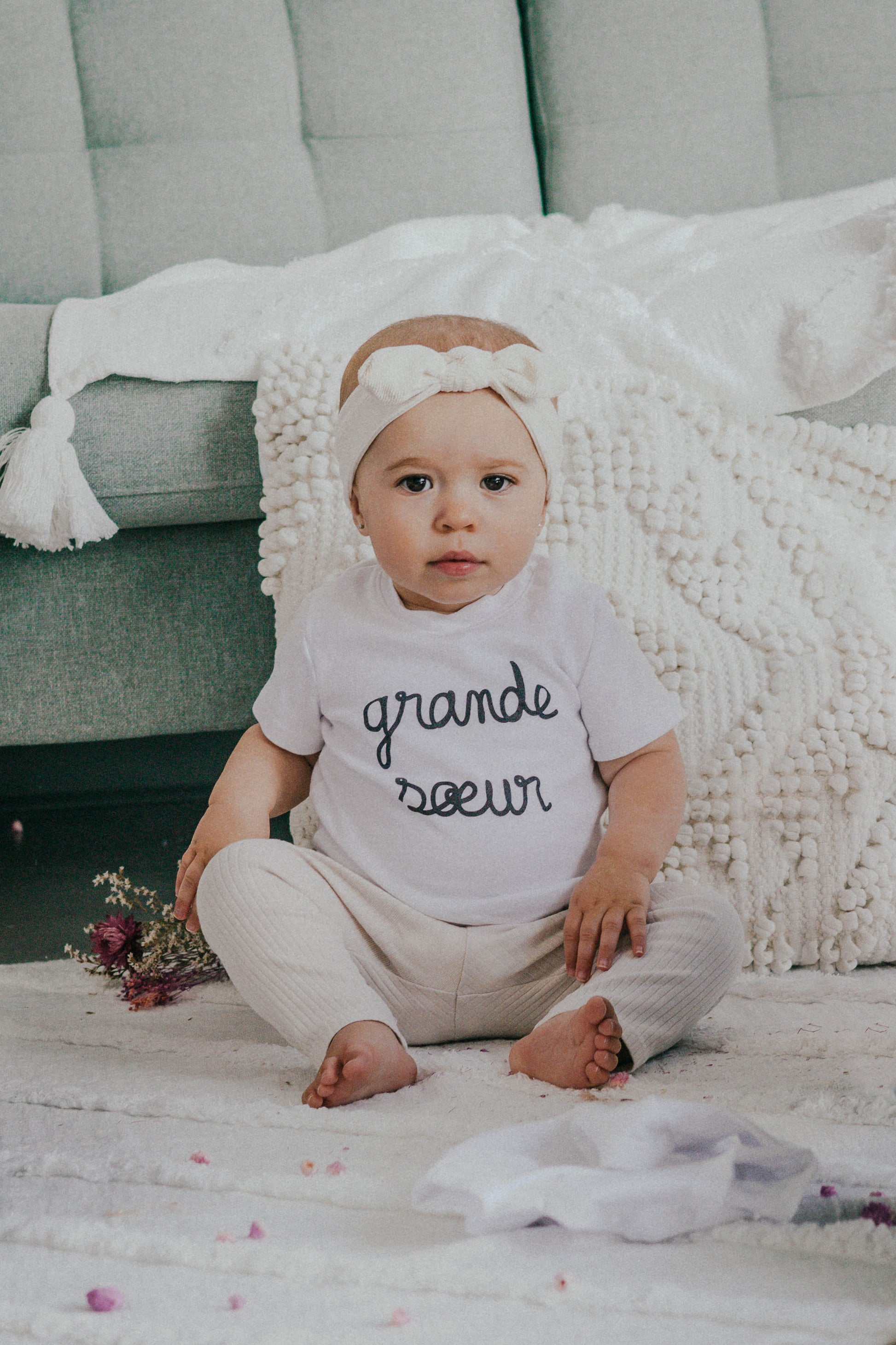 Pour annoncer que le premier bébé (ou la plus jeune de la tribu) va devenir grande sœur. À faire porter l'air de rien jusqu'à ce que vos proches se rendent compte du message ! Parfait aussi pour faire du twinning avec bébé une fois parmi vous.